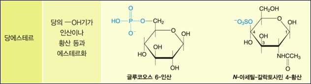⋅화학적·물리적 성질이 크게 바뀜, 인산이나 황산과 에스테르를 형성한 당류가 가장 흔함