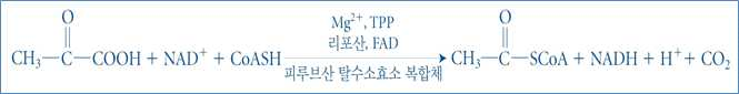 ⋅피루브산의 탄소 하나를 CO2로 방출하는 탈탄산 산화반응