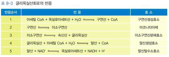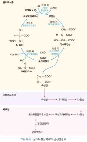 ⋅글리옥실산회로는 5개의 반응으로 구성됨