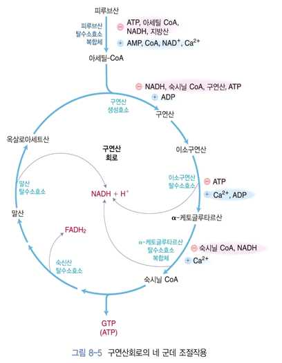 ⋅구연산회로의 조절은 아세틸 CoA가 공급되는 피루브산 탈수소효소복합체의 작용으로부터 시작