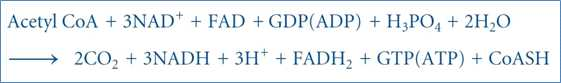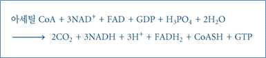 ⋅아세틸 CoA의 아세틸 부분을 이산화탄소로 산화시키며 이 때 조효소인 NAD+와 FAD를 각각