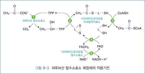 2) 피루브산 탈수소효소 복합체의 세 가지 작용