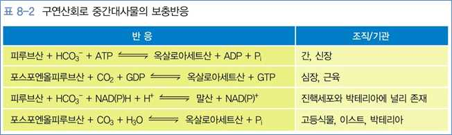 → 지방산, 여러 아미노산, 뉴클레오티드 및 포르피린 등 생체분자의 탄소골격이 됨