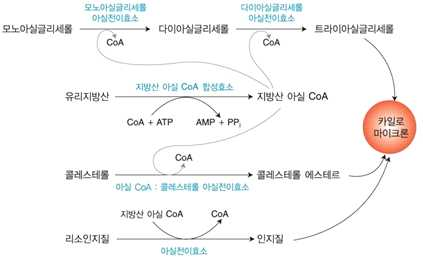 ⋅리소인지질 → 인지질 → 카일로마이크론
