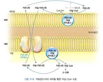 서는 미토콘드리아 안으로 들어가야 하는데, 이 때 필요한 운반체(carrier)로 옳은 것은?[2018년_14번]