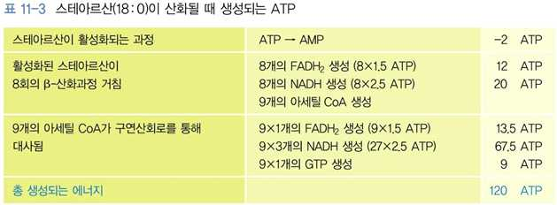 문제 3. 스테아르산은 탄소수가 18개인 포화지방산이다. 이 스테아르산이 완전히 산화될 때 몇 회의 β-산