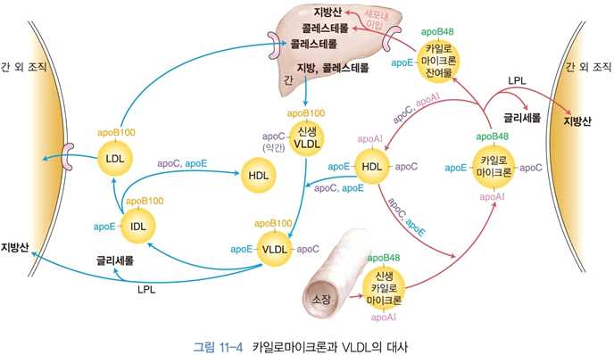 ⋅간 조직에는 LPL이 없어 카일로마이크론에 있는 중성지방을 제거 못함