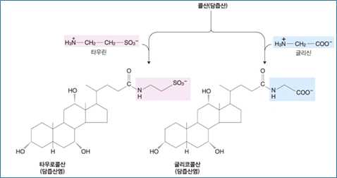 (-COO-)가 곁사슬에 첨가 → 담즙산 생성