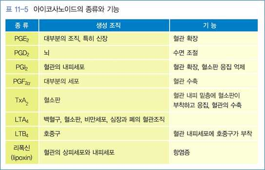 ⋅낮은 농도로도 다양한 생리적 기능을 수행함 → 염증성 반응, 통증과 발열, 혈압 조절, 혈액 응