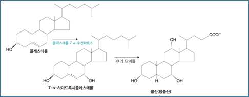 하는 콜레스테 롤 7-α-수산화효소에 의해 촉매됨