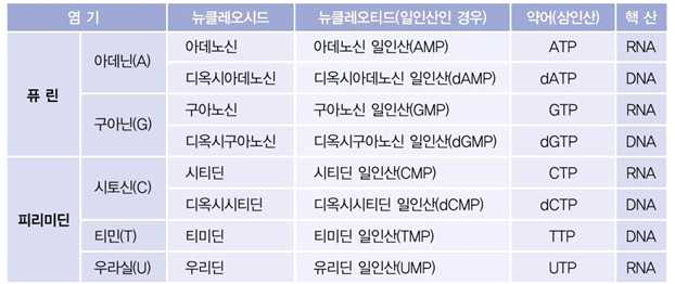 질소 염기의 계열이 올바르게 연결된 것은 무엇인가? [2018년_10번]