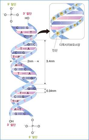 ⋅DNA는 유전정보를 저장하고 있는 이중나선 구조와 유연한 폴리뉴클레오티드 구조