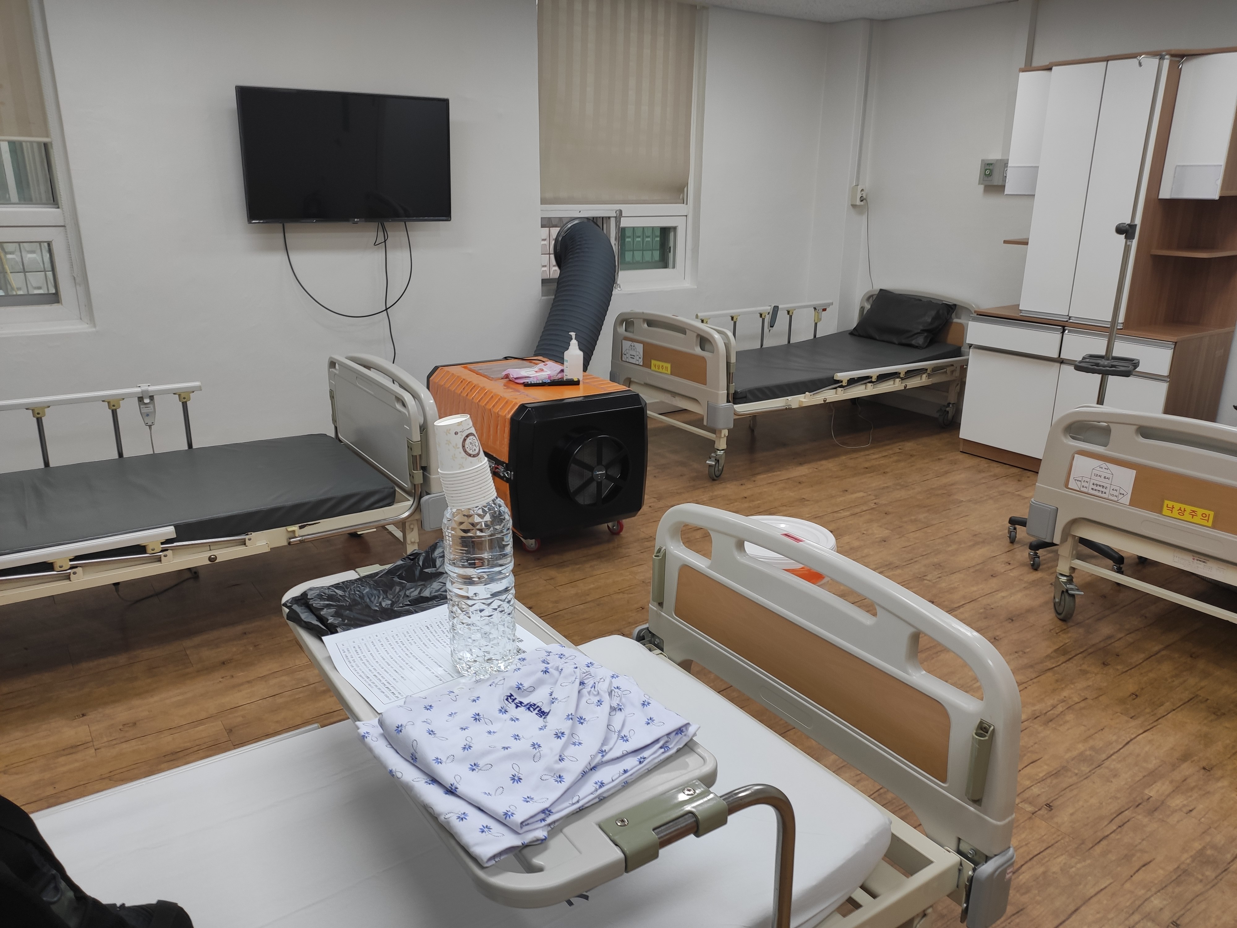 읍압병실이라서 음압기계가 있는데 웅웅 소리가 꽤 시끄럽다. 이 기계가 1억 가까이 한다니 놀랍다.