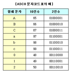 문자는 정해진 코드표에 따라 각각의 문자를 숫자로 변환시키는 과정을 거치며