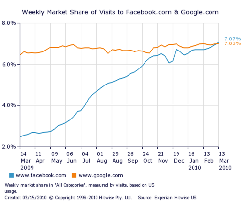 - 2010년 3월에는 페이스북이 기존의 구글사이트의 이용량을 뛰어넘기도 함. 앞으로 영향력이 더 커질 것