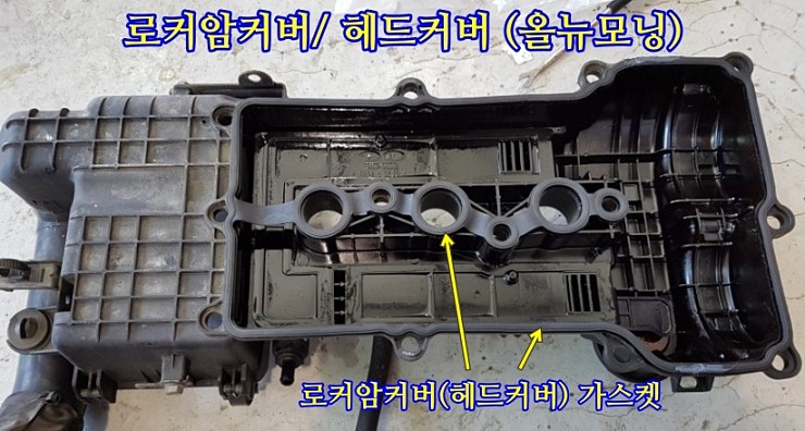 가스킷(gasket)을 사용하는데, 이 가스킷이 로커암커버 가스켓 또는 헤드커버 가스킷임니다.