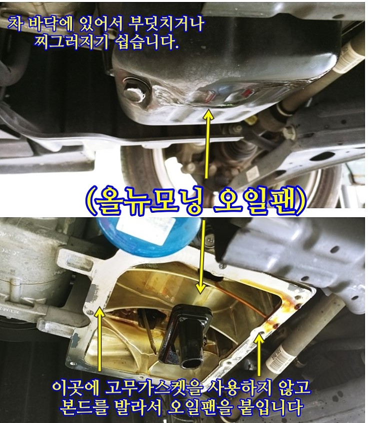 높은 방지턱이나 길위에 튀어나온 장애물에 부딧치면 오일팬이 파손되거나 찌그러져서 오일팬