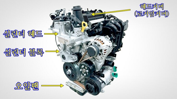 자동차의 엔진은 실린더 헤드, 실린더 블록, 오일팬 크게 세 부분으로 나뉘며, 실린더 헤드의 윗부분을 덮고