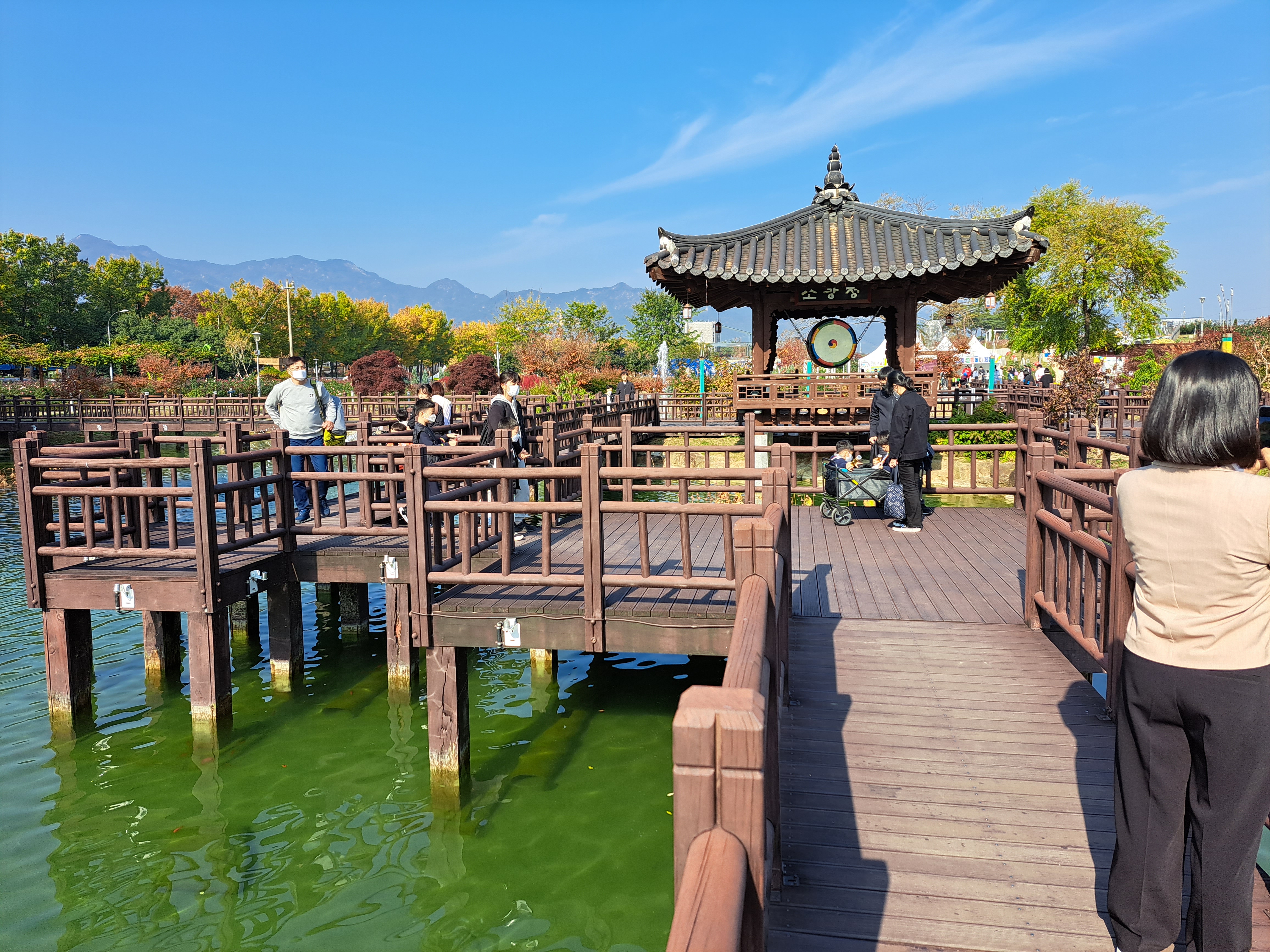 물 위 나무데크와 북을 칠 수 있게끔 만들었네요
