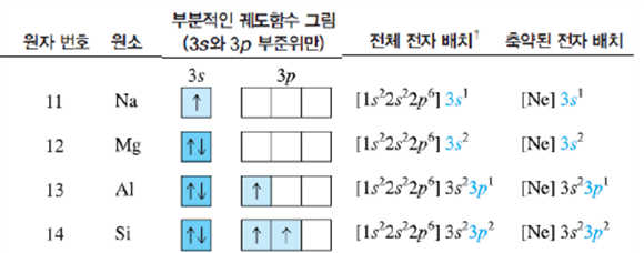 전자의 수가 많은 원자 중에서(K이후의 원자들) 안쪽 궤도가 비어 있는 상태에서 바깥쪽 궤도에 전자가 채워지는 원자가 있는 이유 : 에너지 준위(주양자수가 작은 궤도함수가 주양자수가 큰 궤도함수 보다 에너지 준위가 클 수 있음)