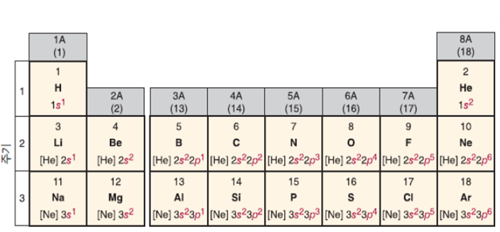 6. IA(1개), IIA(2개), ⅢA(3개) →최외각의 전자껍질에 전자 존재