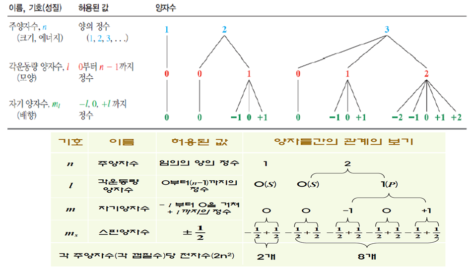 . 주양자수(n) : 보어의 양자수, 원자핵으로부터 거리→에너지를 규정