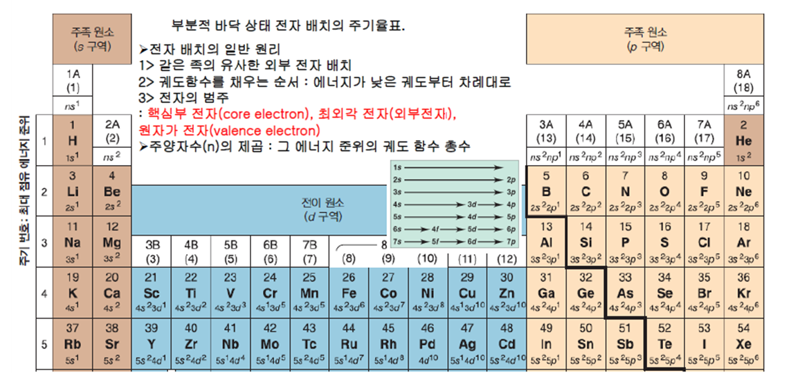 I B, II B, III B....VIII B : 전이원소(다 채워지지 않은 안쪽 껍질)