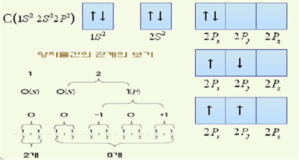 - 파울리의 배타원리 : 동일한 원자에 전재하는 전자는 어느 것도 4개의 양자수가 똑같을 수 없다.