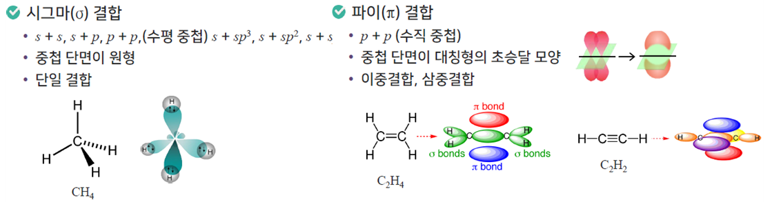 이중결합 : 2쌍의 전자, 시그마결합1+파이결합1