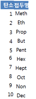 ① 명칭- 탄소 접두어-ane