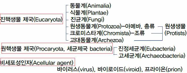 (Eucaryota)과 원핵생물 제국 (Procaryota)으로 분류.