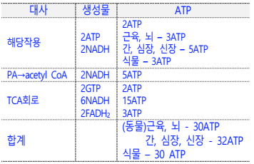 이용될 때 ATP 량 : 30-32분자