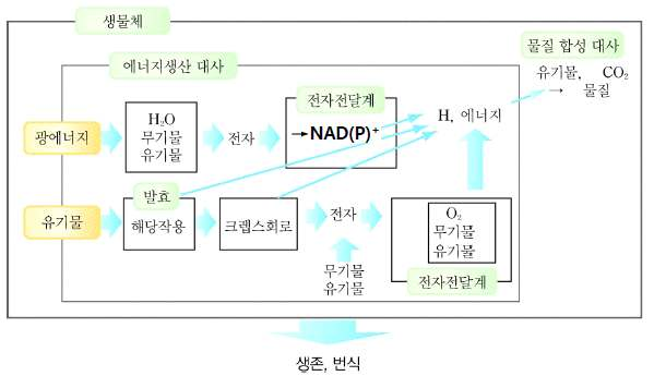 ○ 생물체의 대사반응 = 에너지생산 대사(광영양+화학영양) + 물질합성 대사