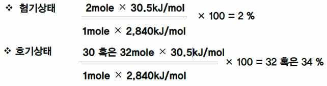 → 혐기상태 : 2ATP, 호기상태 :30ATP