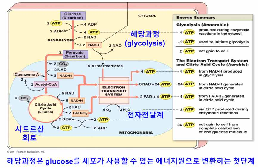 ① 해당작용(glycolysis, Embden-Meyerhof pathway)