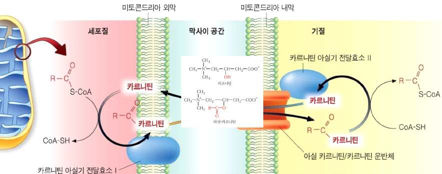 지방산의 미토콘드리아 기질로 이동