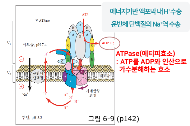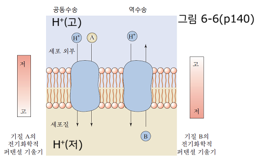 하여 일어나는 수송이다. 능동수송은 1차적으로 양성자펌프를 작동하여 전기화학적 H+ 기