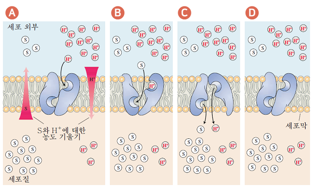 은⑧ 으로 수송한다. ⑧ 은 에너지를 소모하는 것은 아니지만 단순확산보다 확산속도가 훨