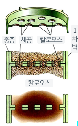 다량의 칼로오스가 체판 위에 축적되어 있는 것을 볼 수 있다.