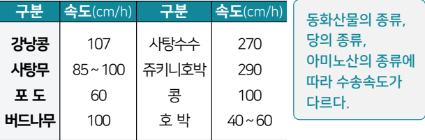 270cm/h이고, 호박과 같이 느린 것은 40~60cm/h이다. 당류에서는 설탕의 수송속도가 상대