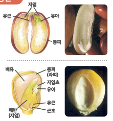 ①. 종자가 발아할 때 배유와 자엽을 어디에 두느냐에 따라 지상형과 지하형으로 구분한