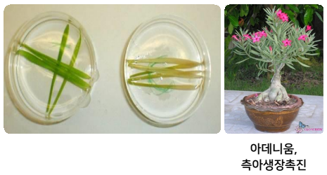 에 따라 생장을 촉진하기도 하고 억제하기도 하는데 줄기의 생장을 촉진하는 고농도의 옥신