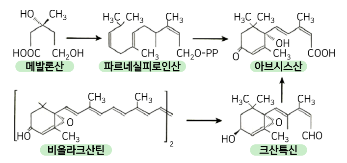 을 억제하고 노화를 촉진하여 ABA와 비슷한 생리작용을 하는 천연 식물생장조절제이다.