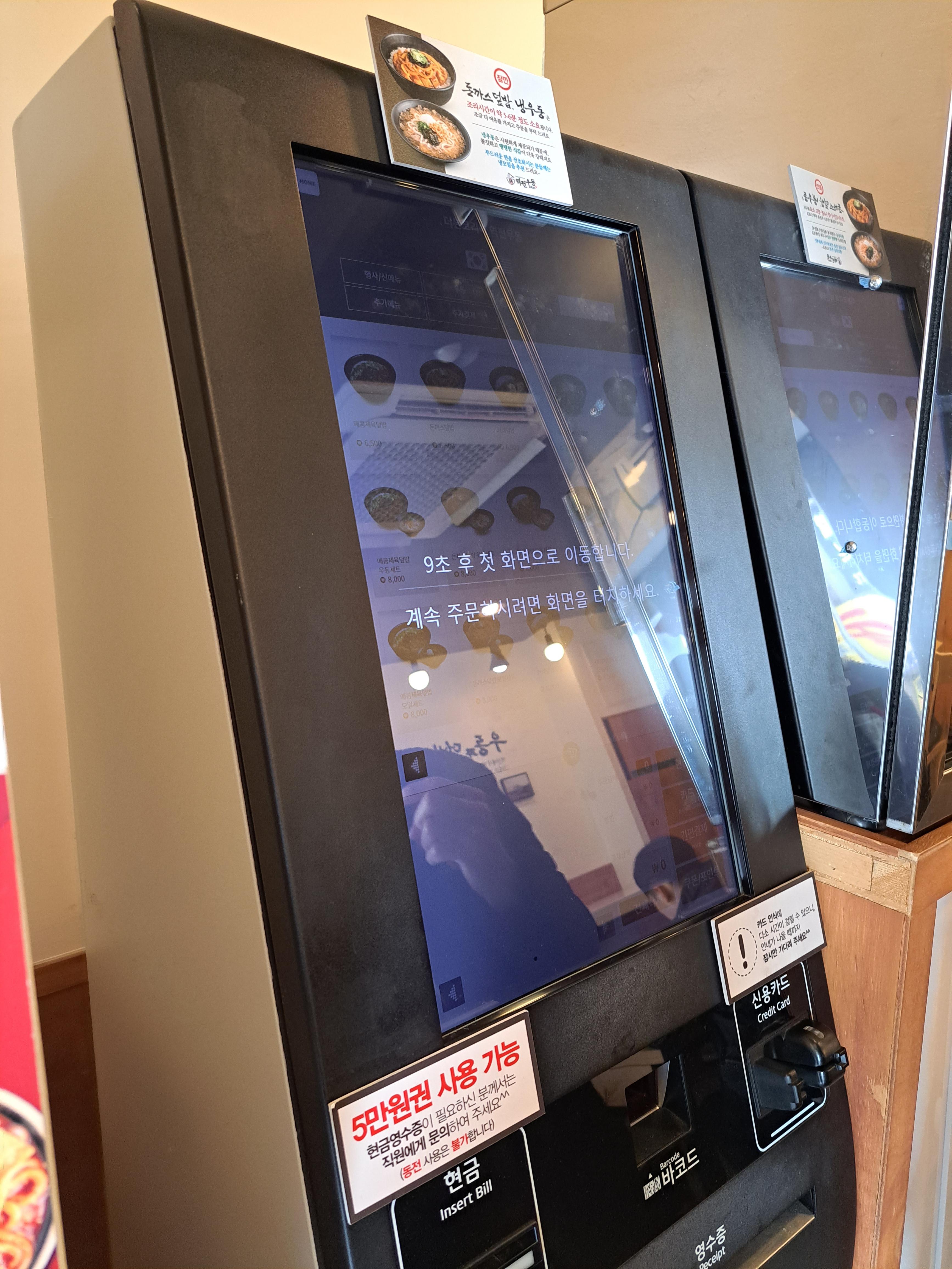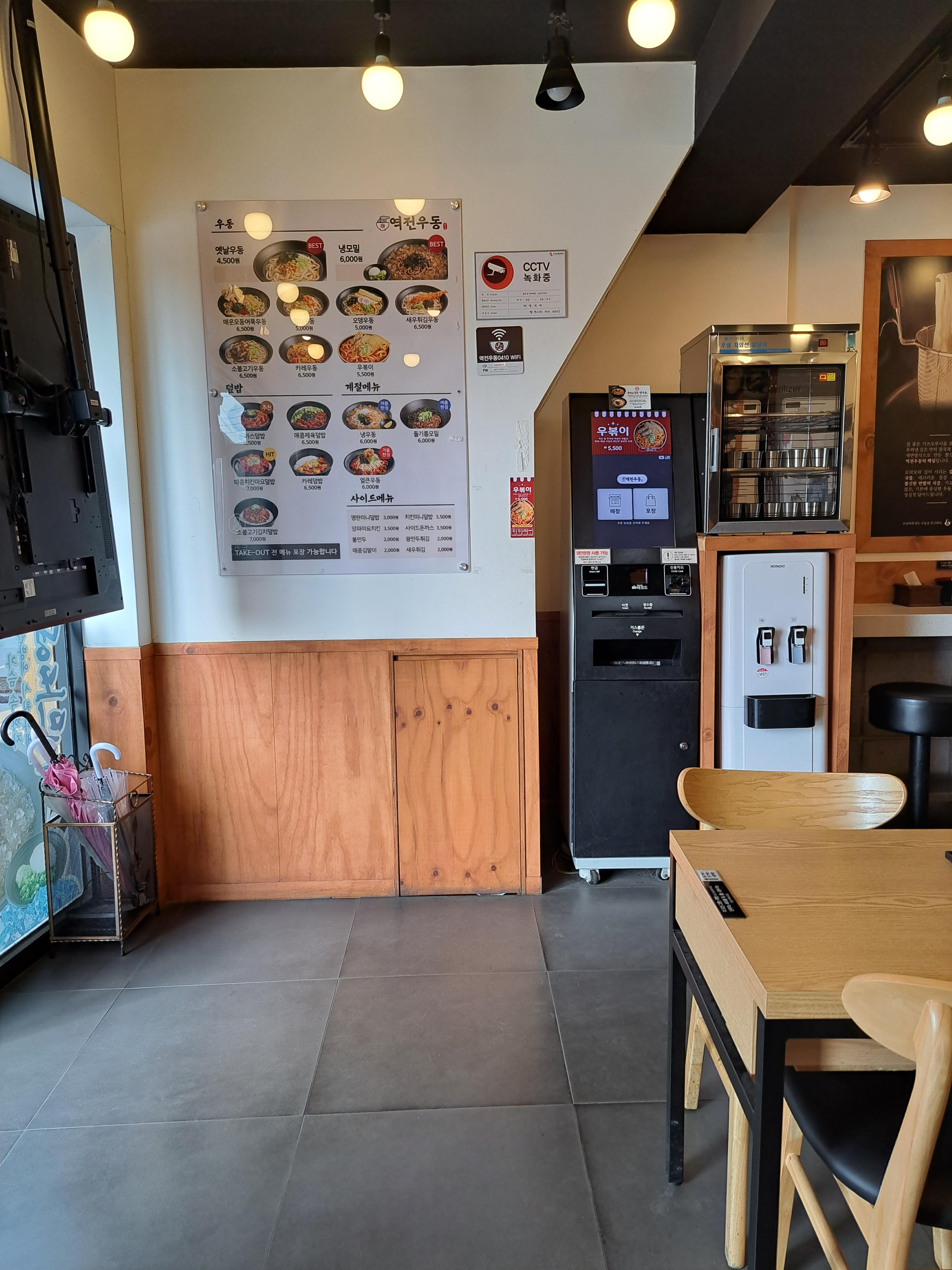 매장 크기는 작고 주문과 계산은 키오스크로 하고 점원은 주방에 한 명 있습니다.