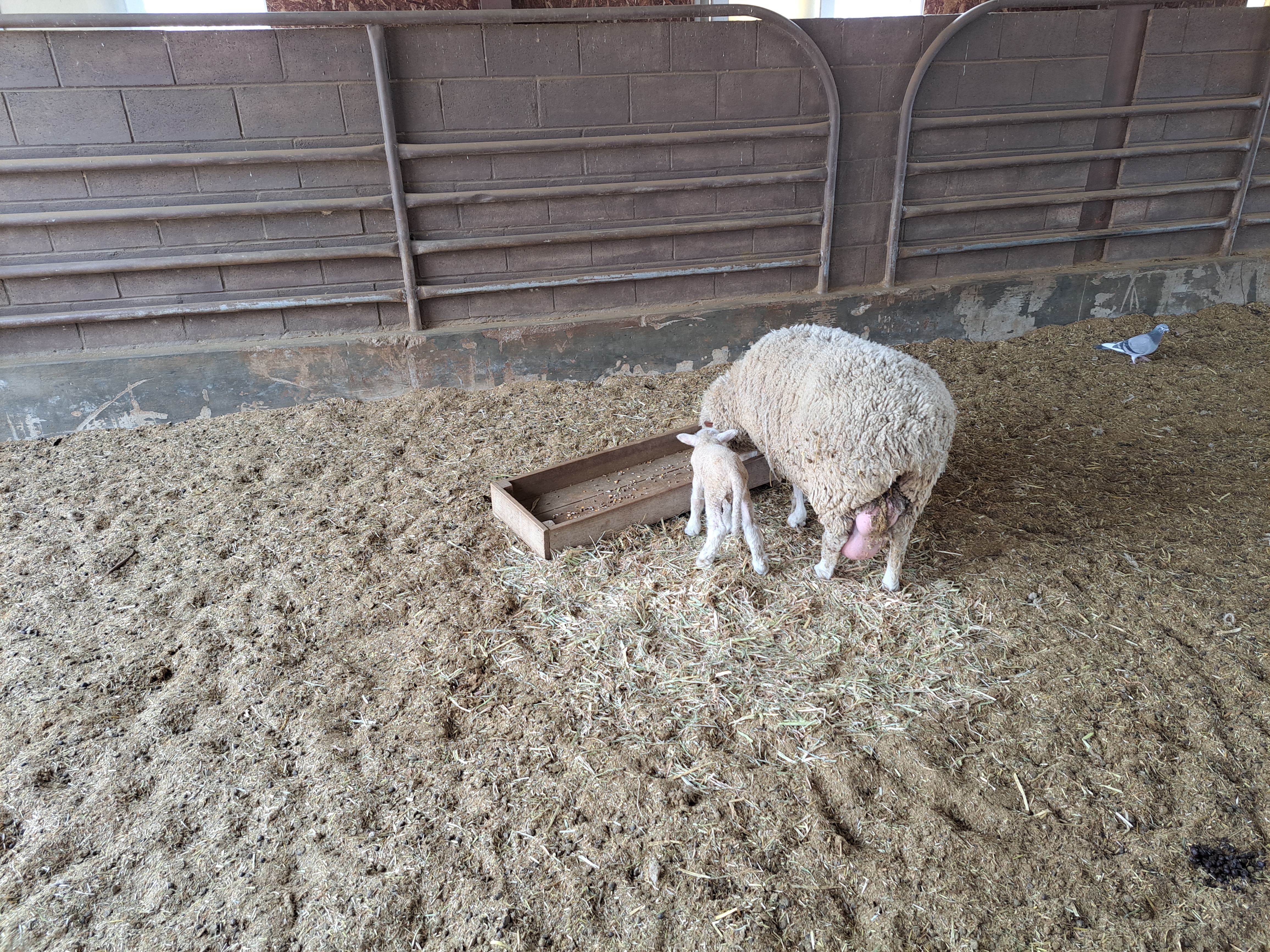 더운지 그늘에 있습니다. 새끼 양들이 너무 귀엽네요
