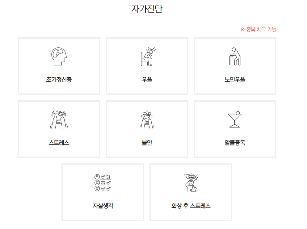 검색하기 힘들지만 어떻게 찾아서 나오는 홈페이지에서도 정신관련 검사후 상담요청을 할 수 있다.