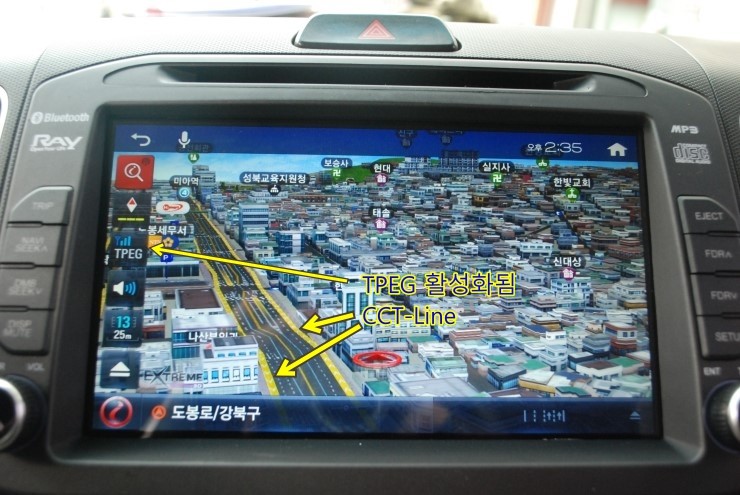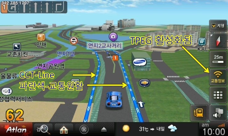 TPEG가 활성화 되면 도로위에 CCT-LINE이 색갈로 표시되며..