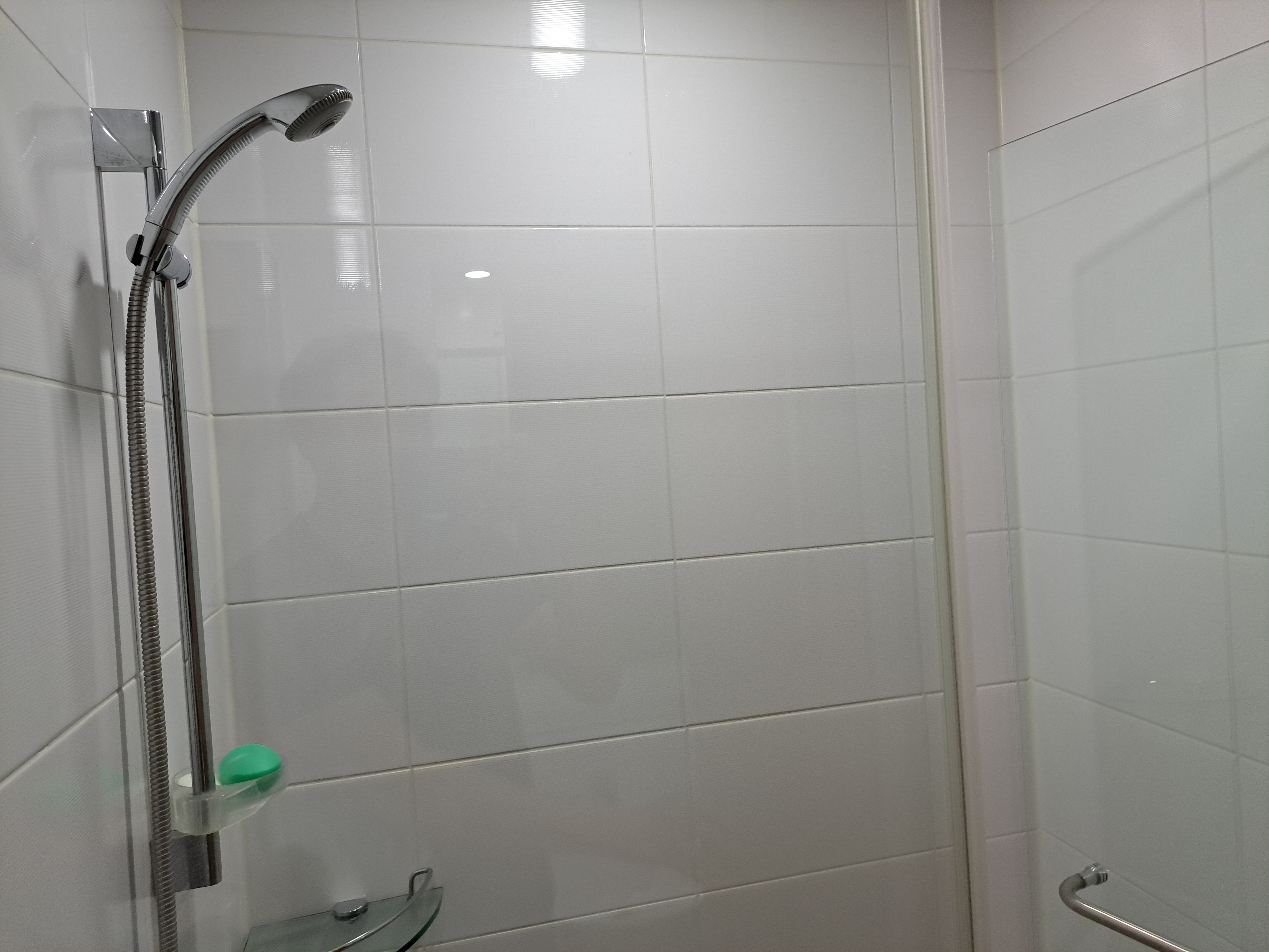 화장실은 신축 원룸 화장실보다 좀 더 큰 사이즈에 20평형 아파트에서 요즘 많이 하는 사이즈 같습니다.