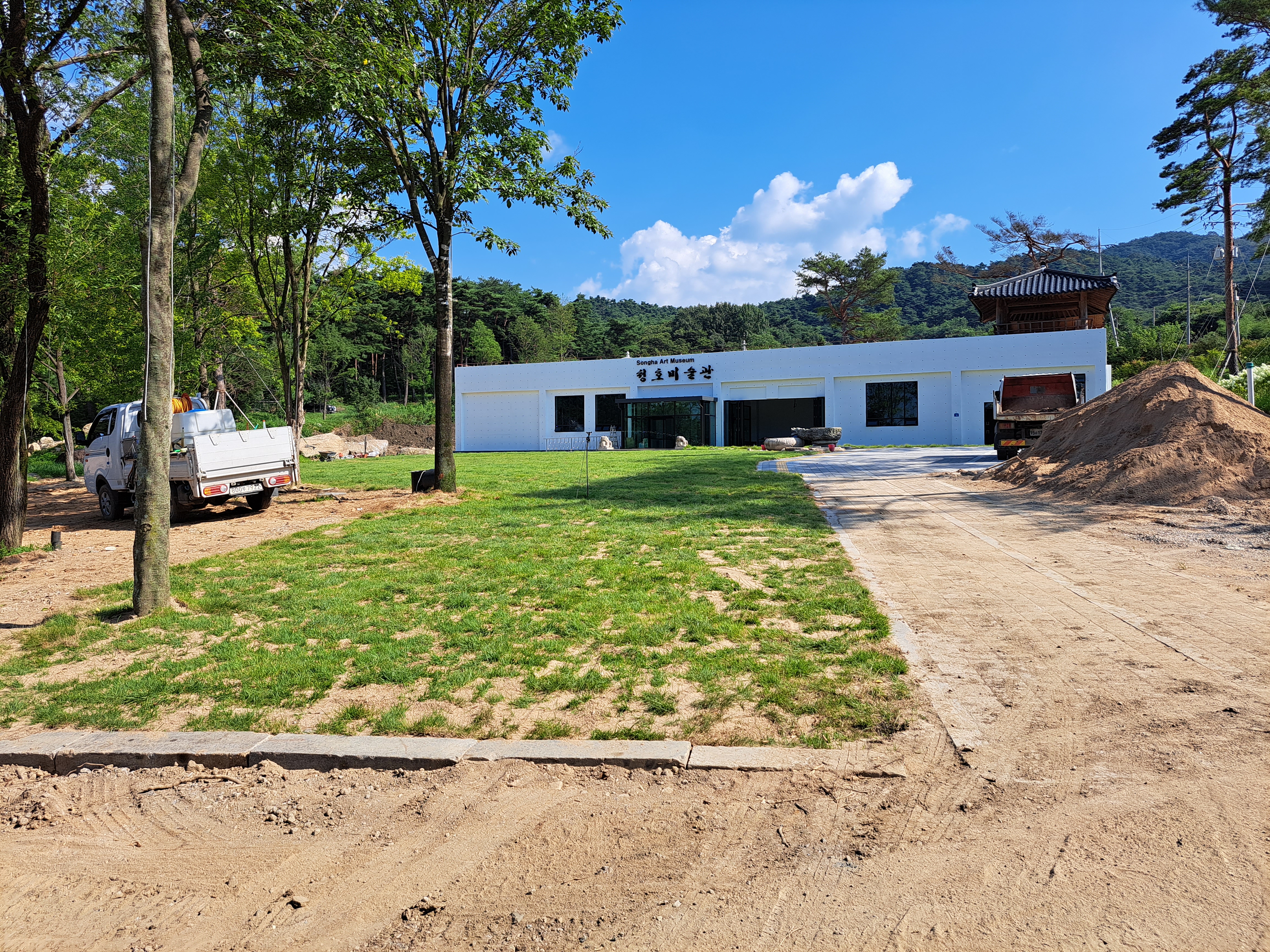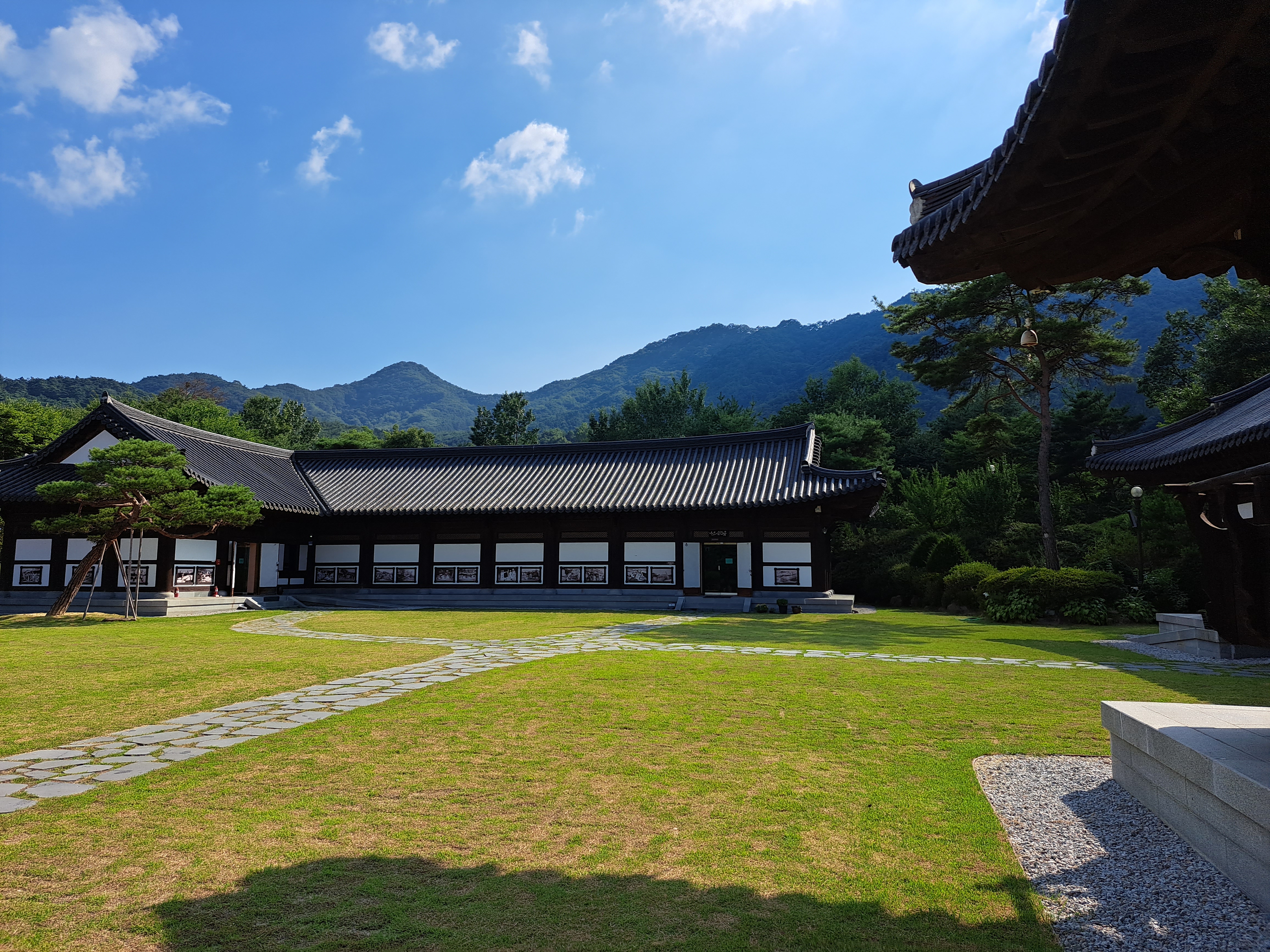 부잣집의 마당일것 같은 한옥집과 잔디마당