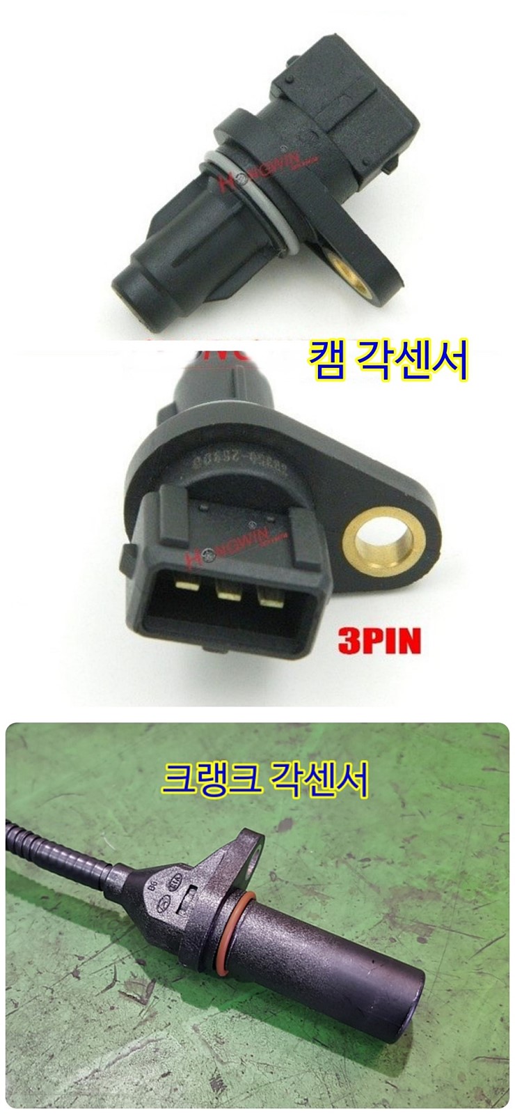 아래는 타차량의 크랭크 각센서와 캠 각센서 부품 사진임니다.